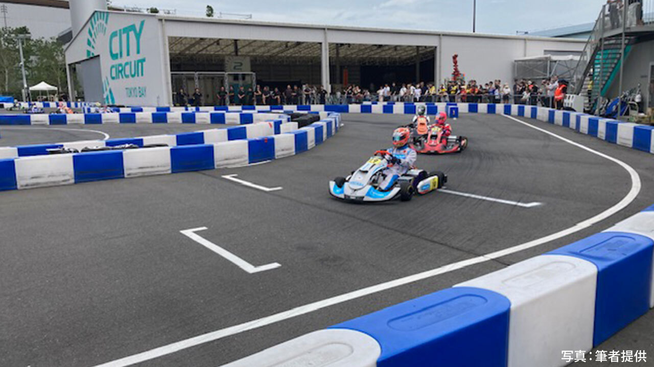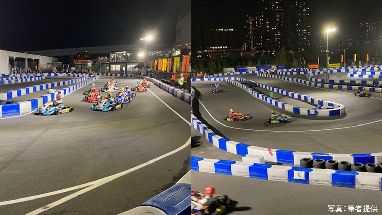 2025 AUTOBACS全日本カート選手権EV部門第5戦、6戦を取材してきました。ボクはモータースポーツの取材記者をスタートさせたのが、レーシングカート。4輪の取材を主にするまでは、レーシングカート雑誌とモータースポーツ誌のレーシングカート紙面で仕事をしていた。今回、約40年ぶりのレーシングカート取材もあって、EV部門の取材は生まれて初めて。EV部門は、2022年からスタートしJAFタイトルのいろいろな選手権でも最も新しいシリーズ。会場はお台場の「シティサーキット東京ベイ」(CCTB)。こちらのサーキットも国内で最も新しいカートサーキット。6チーム12台が参加した。EVなのでモーターの作動音とタイヤのスキッド音だけ。そしてスタートはエンジン搭載のレーシングカートとは異なりフォーミュラカーのそれと同じスタンディングスタート。五つのレッドシグナルが点灯し、それが全てブラックアウトするとレーススタート。動力源となるバッテリーとモーターのウェイトが重く、カートだけで約130Kgあってドライバー込みトータルは、200Kgとなる。静かなる重量級カートのバトルは、同じレーシングカート競技でも異次元。そして、9月の半ばとなると日暮れも早まって、第6戦の決勝は、初のナイトレースとなった。これまた初体験のカートレースだった。百聞は一見にしかず。この後の第7戦、最終の第8戦は同じく「シティサーキット東京ベイ」で11月に開催される。会場はお台場で、ゆりかもめ「青海駅」直結。りんかい線「東京テレポート駅」徒歩4分という立地である。
