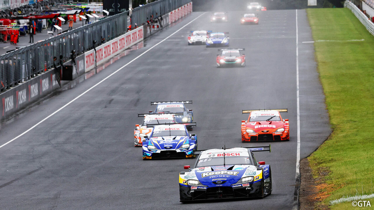 特に印象的だったのが、最終コーナー。これまでのSUGOでウェットコンディションだと、イン側のラインを避ける傾向があったが、阪口晴南や福住仁嶺など、イン側を積極的に使うライン取りで加速し、前のマシンに仕掛けていくという姿がみられた。