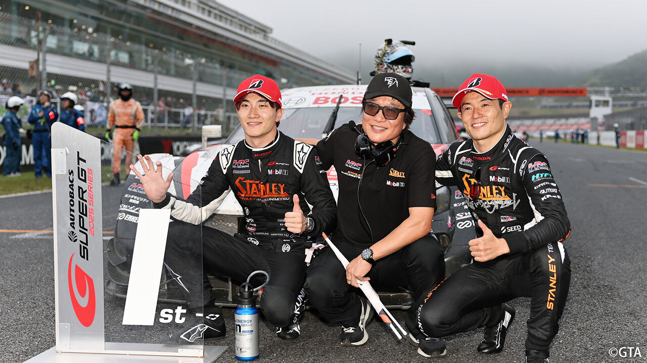 そして、トップ争いは、それまで流れから一変し、トップにNo.100 STANLEY CIVIC TYPE R-GT、2番手にNo.16 ARTA MUGEN CIVIC TYPE R-GT #16、3番手にNo.64 Modulo CIVIC TYPE R-GTが進出。特に予選ではQ1敗退で12番手スタートだった100号車は、タイヤと燃費を労わる作戦で、2回目のピットストップ時間を短縮させることに成功。その結果、最終スティントで逆転。最終的に25.9秒もの大差をつけて、今シーズン初優勝を飾った。