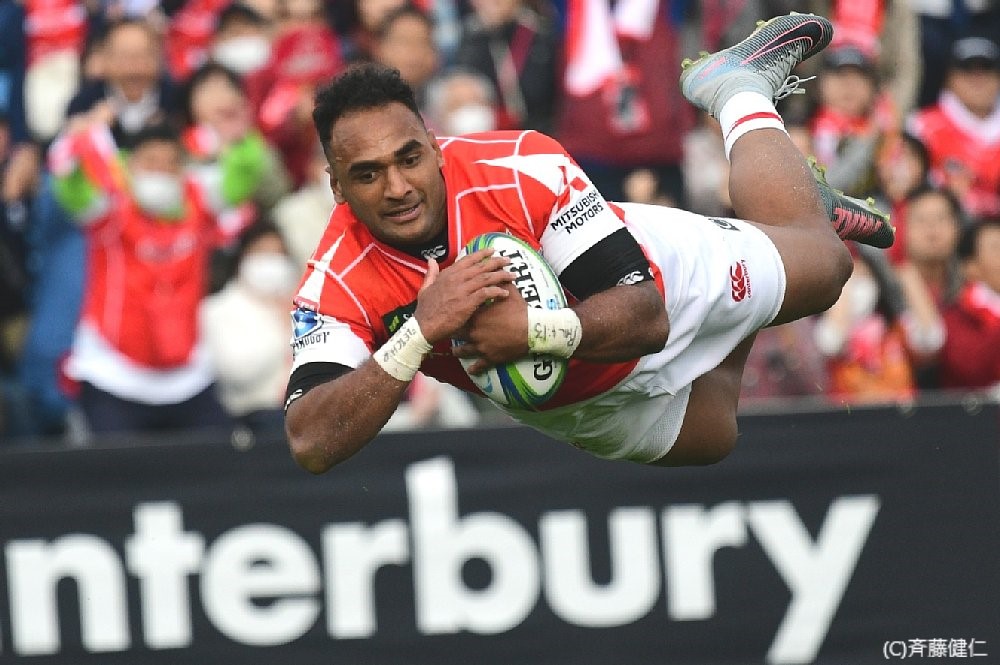 13分、自陣、相手のノックオンからボールを右サイドに展開し、WTBセミシ・マシレワへ。マシレワがそのまま走りきってトライ。