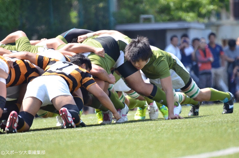 4月28日に行われた第7回関東大学春季大会Aグループ、慶應義塾大学との一戦。大東文化は前後半で11トライを挙げ、63-12と敵地で慶応義塾を圧倒し、初戦を制した。