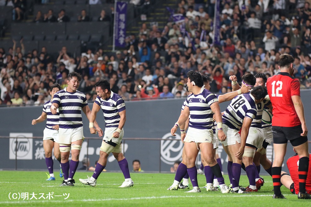 今年の明治は強い。誰もがそう感じる春を過ごした。4月より行われた関東大学春季大会に明治が初優勝。同大会開始より王者の座を守ってきた帝京大学を撃破。流れそのままに、5戦5勝と圧倒的力を見せつけた。8年ぶりとなる帝京大戦勝利は、対抗戦優勝への期待がさらに高まった。
