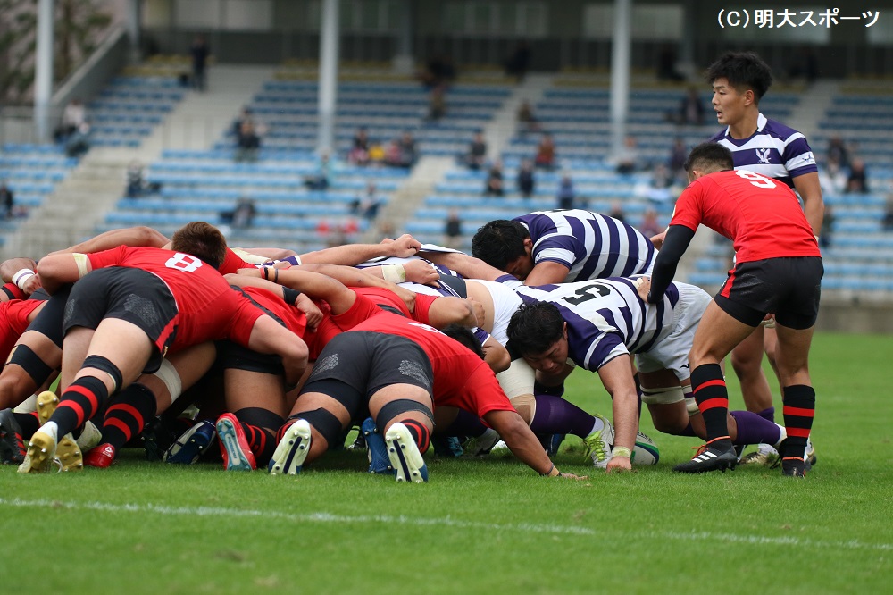 この日、スクラムに自信があったことはもちろんだが、「敵陣で時間を使って明治の流れに持っていく」(福田健)。時間と状況を落ち着いて判断した戦略だった。その後、もう1回アドバンテージを獲得し今度はPGを決め、ゲームを決めた。