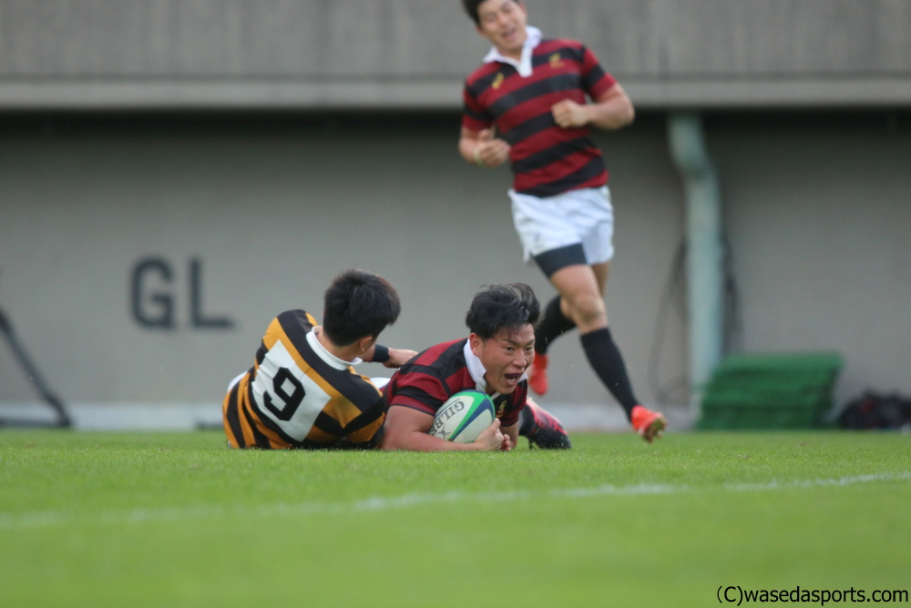12分には河瀬が右ライン際に抜け出すと、オフロードパスを受けたWTB(ウィング)長田智希(スポ1=大阪・東海大仰星)が駆け上がり、最後はフォローに入った齋藤がインゴール右隅に飛び込んだ。