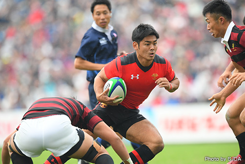 第2試合では前人未到の10連覇を目指す帝京大が登場。関東大学リーグ戦1部3位の流通経済大と対戦する。対抗戦では、明治大に敗れ、慶應義塾大に大苦戦と、難しいシーズンを送ってきた。しかし、過去9連覇もシーズン終盤になるにつれてチーム力を上げてきた実績がある。ここで内容の良い試合をして波に乗りたいところだ。大学レベルでは図抜けた決定力を持つFB竹山晃暉を擁し、FWも191cmの秋山大地、NO8ブロディ・マクカランらを軸に激しく前に出る。鉄壁のディフェンスで攻撃を受け止め、力強い戦いを見せるだろう。対する流通経済大もパワフルなCTBヴィアメ・タカヤワ、セブンズ日本代表経験のあるWTB韓尊文らがおり、ボール保持時間を多くし、主導権を握りたい。
