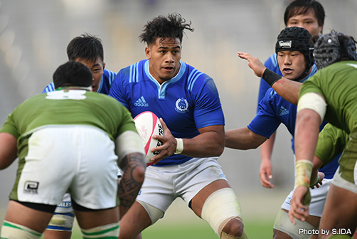 第2試合は関西王者の天理大と関東大学リーグ戦1部2位の大東文化大が相まみえる。天理大は関西リーグを圧倒的な強さで駆け抜けたが、接戦をしていないのが気がかりなところ。互いに先発に3名の留学生を擁し、彼らを突破役にゲームを組み立てる。両チームともそれ以外の日本人選手は比較的小柄で、3人を生かすための献身的な働きが勝利のカギになる。天理大は日本代表2キャップを持つNO8ファウルア・マキシ、ジュニア・ジャパンのCTBシオサイア・フィフィタが目立つが、HO島根一磨主将を筆頭に体を張ってディフェンスし、攻めては湧き出るようなサポートでトライを奪う。大東文化大にもLOタラウ、NO8アマトのファカタヴァ兄弟がおり、ボールを持って前に出る能力に秀でる。勢いづけば止めるのは難しい。主将を務めるのは天理大と同じくHOの平田快笙。両主将がリードするスクラムの優劣は、攻撃の勢いを引き出すという意味でも勝敗を分けるポイントになりそうだ。