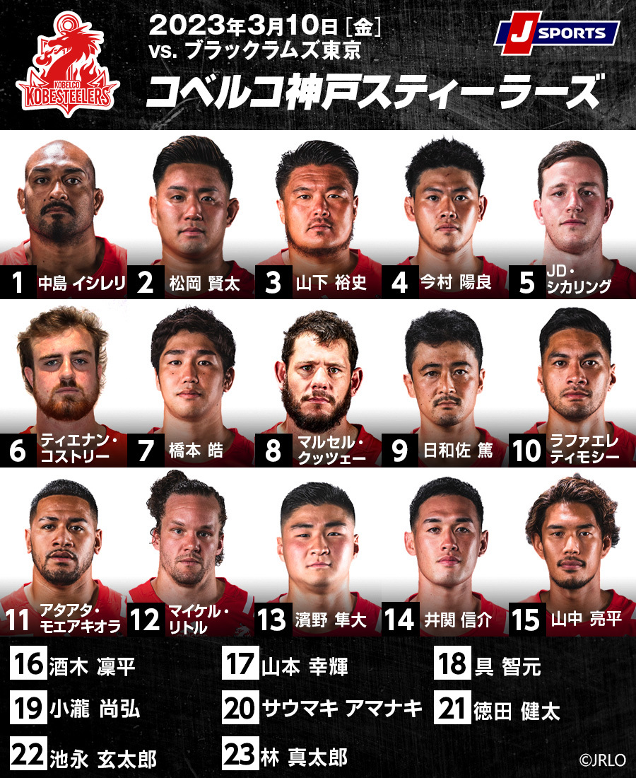 勝ち点19で並ぶリコーブラックラムズ東京とコベルコ神戸スティーラーズの対戦は、3月10日(金)午後7:00から東京都・秩父宮ラグビー場でキックオフされる。