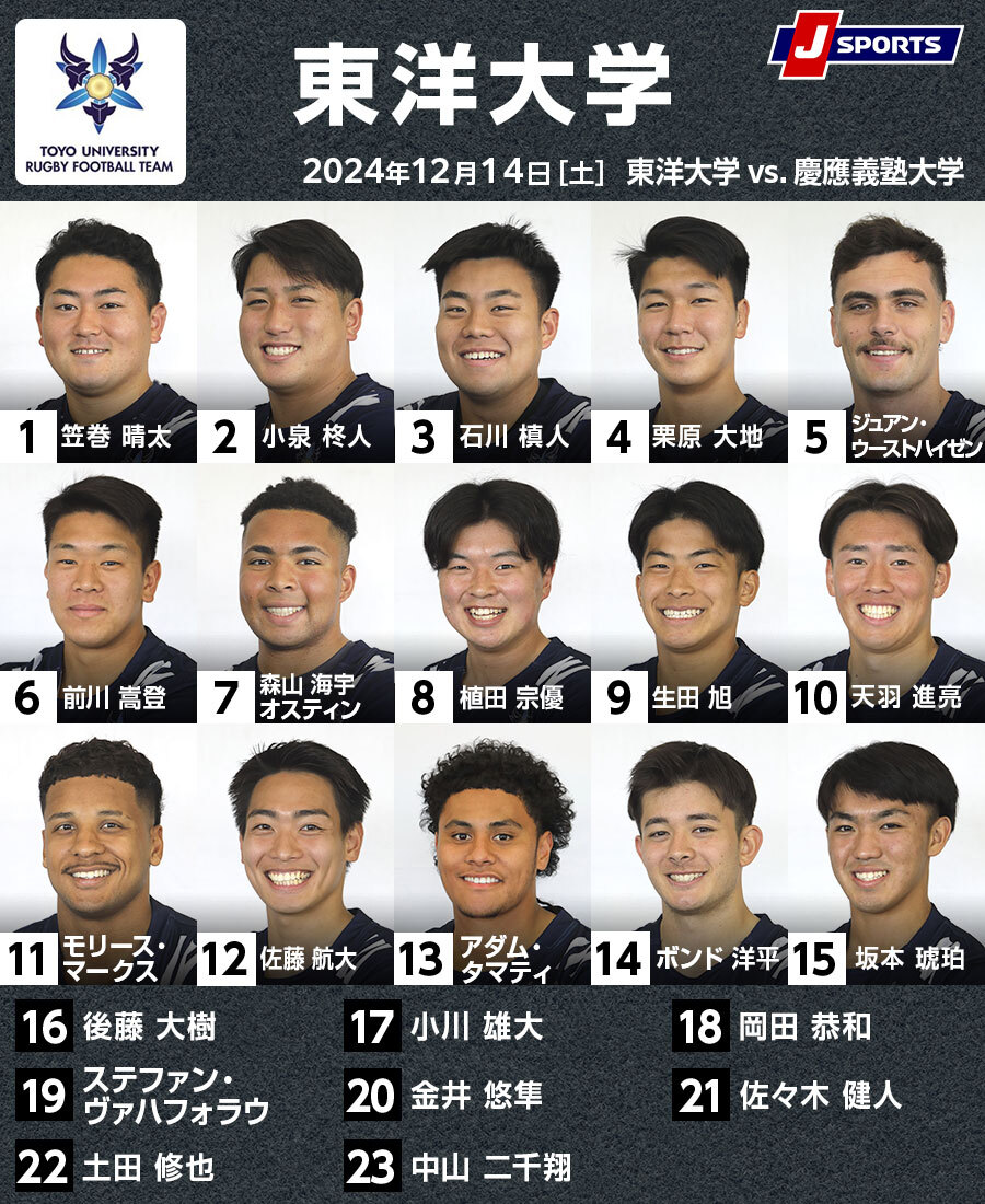 慶大は春の東洋大戦で3トライを奪った小野澤謙真が、今回の試合は怪我で欠場する。