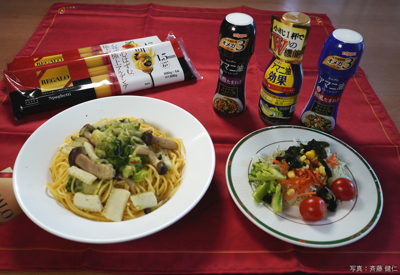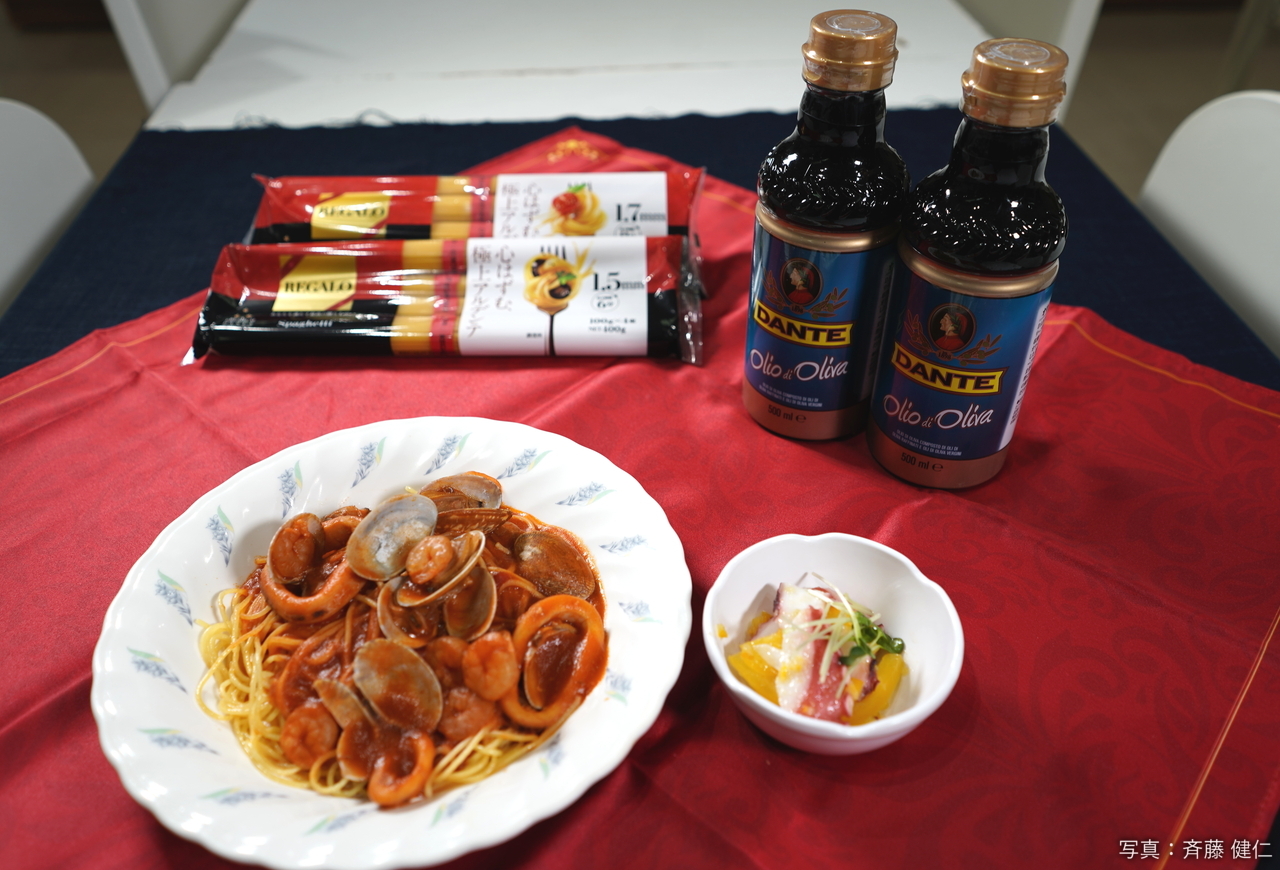 なお今回、両チームに株式会社ニップンから提供されたロングパスタは「REGALO スパゲッティ 1.5mm」だ。「REGALO(レガーロ)」はイタリア語で「贈りもの」を意味するという。厳選した北米産デュラム小麦を配合し、小麦中心部の良質な部位を使用、小麦本来の風味を引き出した、明るく鮮やかな黄金色のパスタで、<弾力・コシ・なめらかさ>3つの美味しさが生む、極上のアルデンテ食感が楽しめるという。またREGALO スパゲッティ 1.5mm は麺のおいしさを生かすシンプルなソースととともに楽しめる。