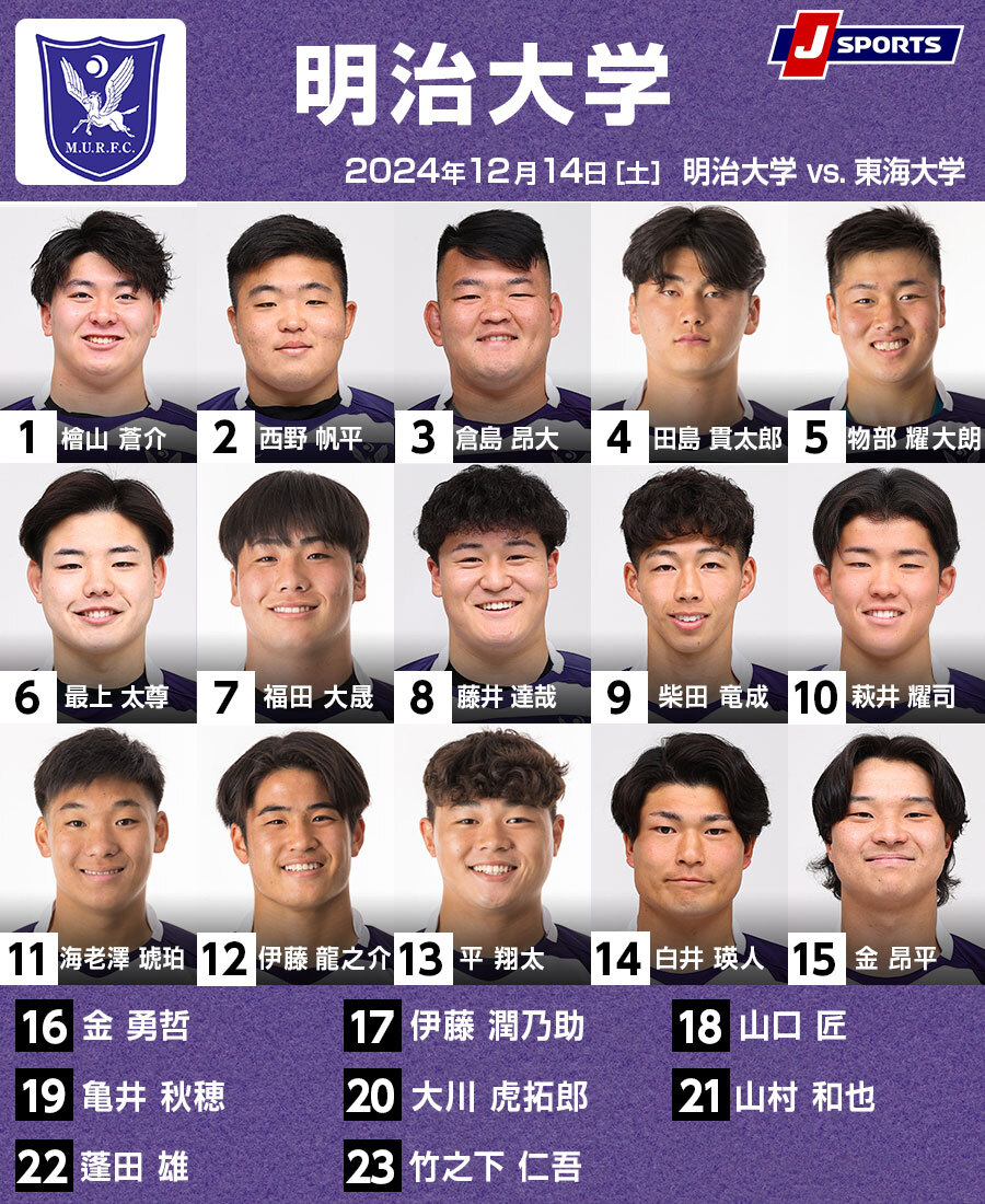 明大は早大戦からメンバーを大きく変えて東海大に挑む。木戸大士郎主将(文4=常翔学園)が脳震盪(のうしんとう)で欠場。また、秋濱悠太(商4=桐蔭学園)、佐藤大地(法4=国学院栃木)、安田昂平(商4=御所実)らリーダー陣もメンバーから外れた。