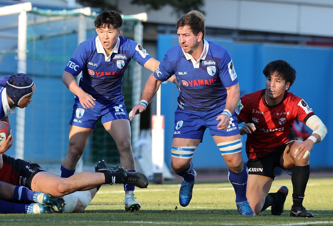 ブルーレヴズは19分、相手の反則からNO8スミスが自ら仕掛けてチャンスを作り、WTBツイタマが今日2つ目のトライを挙げた。イーグルスもラインアウトを起点にアタックし、27分にWTB石田がトライを挙げた(46-28)。