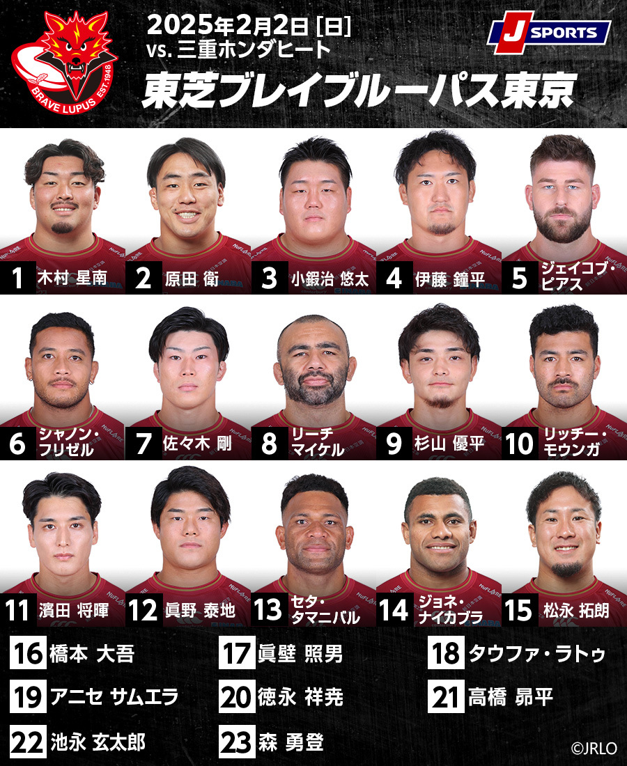 対するBL東京は前節から先発は2名の変更のみ。ワーナー・ディアンズが欠場し、伊藤鐘平がLO(4番)に入り、ジェイコブ・ピアスが4番から5番に移動した。WTBは桑山淳生に代わって今季初出場となる濱田将暉。キャプテンのNO8リーチ マイケル、SOリッチー・モウンガら経験豊富な選手たちがチームをどう蘇らせるか。