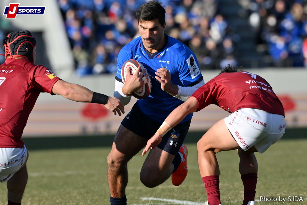 前半を終えて、ポゼッション(ボール保持時間)は埼玉WKが66%と圧倒的優位に立っていた。ペナルティーの数もBL東京が8に対して、埼玉WKは1。規律の乱れもBL東京を苦しめていた。後半に入っても埼玉WKの攻勢が続いたが、約10分にわたって防戦一方の時間を耐えたBL東京は、CTBセタ・タマニバルのオフロードパスを受けたモウンガが左コーナーに迫り、さらにつないでタマニバルがタックラーを弾き飛ばしながらトライ。松永のゴールを決まって、16-14と2点差に迫った。