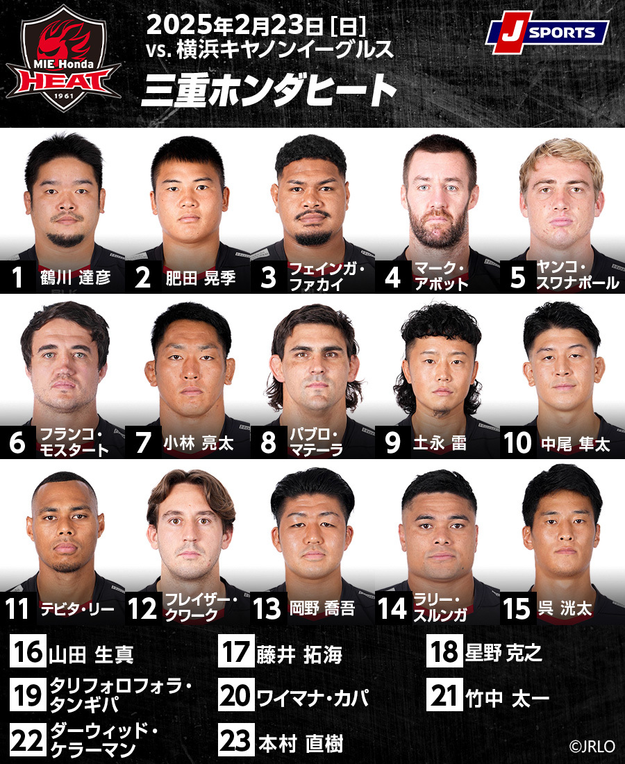 日本ラグビー最高峰のリーグワン2024-25のディビジョン1が第9節を迎える。全18節のレギュラーシーズン前半のラストラウンドだ。プレーオフ進出枠の6位までを巡る勝ち点争いは熾烈だ。2月23日(日)、三重県の鈴鹿で行われるこの試合も、プレーオフ進出争いでは重要な意味合いを持つ。ホストゲームとなる三重ホンダヒート(三重H)は3勝5敗の勝ち点14で8位。ビジターの横浜キヤノンイーグルス(横浜E)は5位だが、4勝4敗の勝ち点20で、その差はわずかだ。