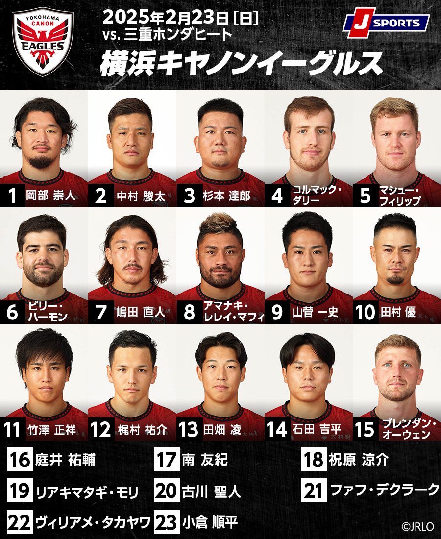横浜E戦に臨むメンバーは、前節から先発15名で2名のみの変更。WTB(11番)は本村直樹がリザーブに下がって、第2節以来に出場となるテビタ・リーが先発。FBはトム・バンクスに代わって前節の逆転ゴールを決めた呉洸太が入る。FWのメンバーは変わらず、NO8パブロ・マテーラがキャプテンとしてチームをリードし、身長2mのLOヤンコ・スワナポール、FLフランコ・モスタートら強力な布陣だ。