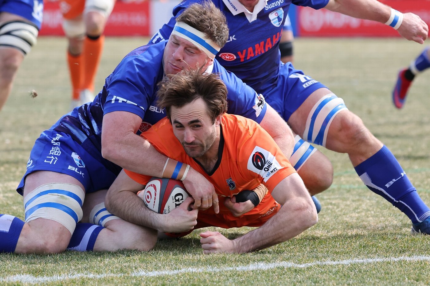 ブルーレヴズも22分に、日本代表WTBマロ・ツイタマが自陣からランで迫り、最後はフォローしたSH北村のトライで38-14とした。