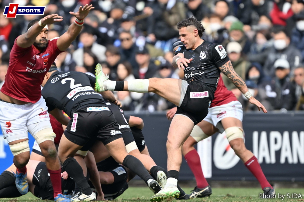 ブラックラムズも直前のプレーで倒れ込んでいたWTBメイン平が自陣からビックゲイン。WTBセミシ・トゥポウがチーム7本目を決めたが、最後は敵陣でノックフォワード(ノックオン)。ブラックラムズは今季初の連勝を逃した。