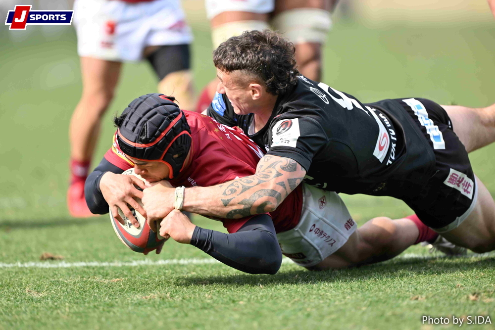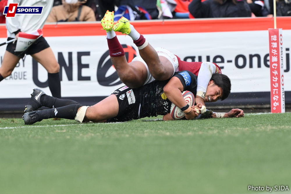 正攻法のフェーズアタックはやはり昨季王者が冴えていた。後半16、21分にチームで崩して2連続トライ。8点リード(38-30)を奪い返した。