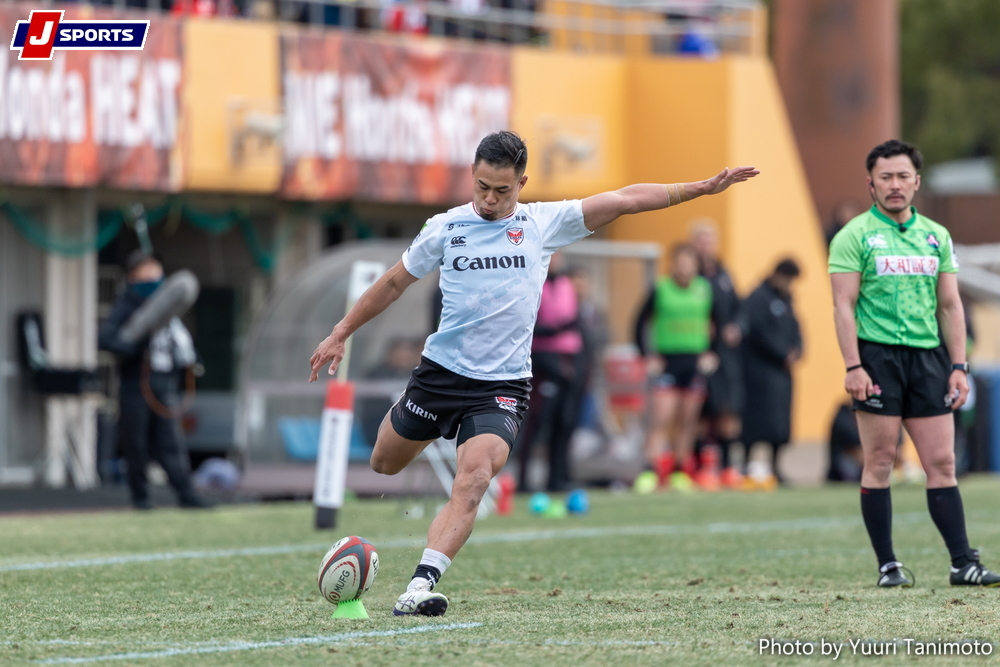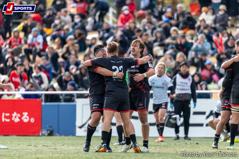 2試合連続の逆転勝利に笑顔があふれた。2月23日(日)、三重交通Gスポーツの杜鈴鹿サッカー・ラグビー場で行われたリーグワン・デイビジョン1の一戦は最後までもつれる激闘となった。横浜キヤノンイーグルス(横浜E)を迎え撃ったホストの三重ホンダヒート(三重H)は、前節、三菱重工相模原ダイナボアーズに逆転勝ち。今季の通算成績を3勝5敗とし、10位から8位に順位を上げていた。5位の横浜Eに勝ってさらに勢いをつけたい。プレーオフ進出圏内の6位に向かって選手たちのモチベーションも高かった。