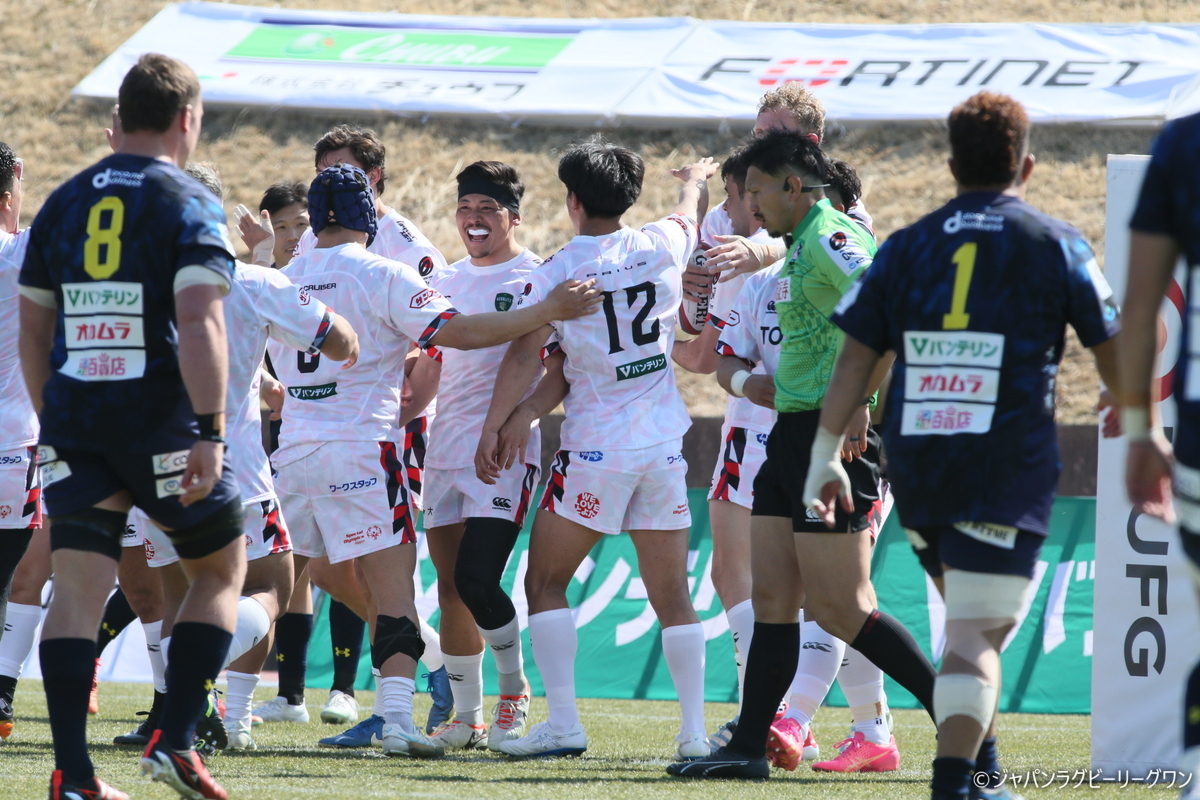 1月に帝京大学でV4を達成した主将、青木恵斗が後半21分に途中出場。同24分には小村真也がジョセフ・マヌとの交替でピッチへ入り、リーグデビューを果たした。