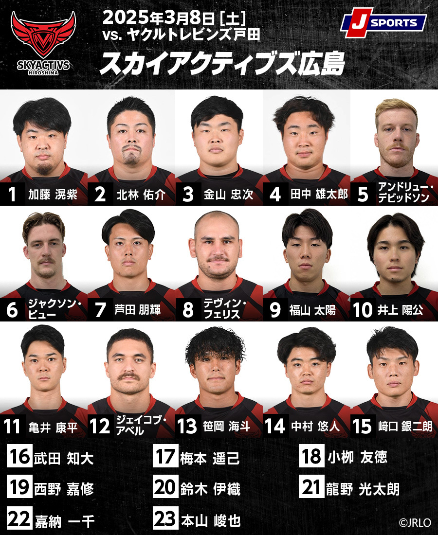 他のFWは前節と同じで、LO田中雄太郎、アンドリュー・デビッドソン、FLジャクソン・ピューとキャプテンの芦田朋輝、NO8テヴィン・フェリスが務める。