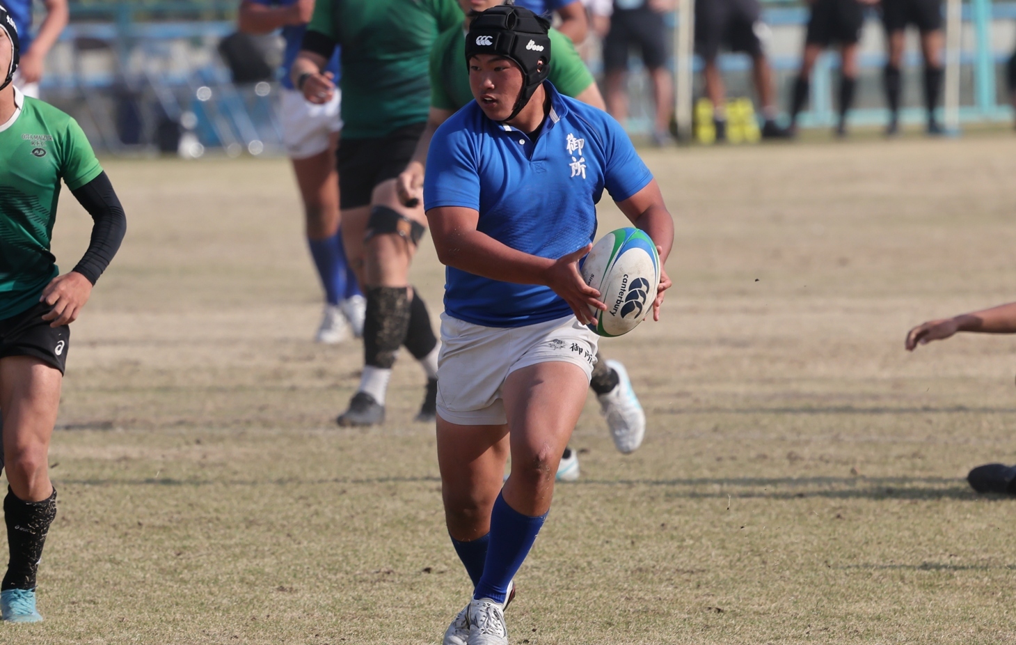 第4試合は大分舞鶴(大分)と、近畿大会3位の強豪・御所実業が対戦した。試合は、FW(フォワード)戦で優位に立った御所実業のペースで進み、前半は17-5で折り返した。後半も御所実業が相手を圧倒し、キャプテンLO津村晃志(2年)らが5トライを挙げ、46-12で快勝した。