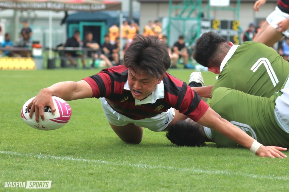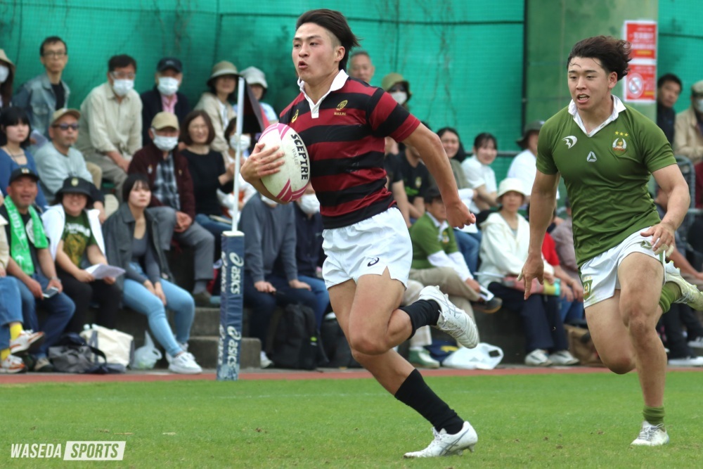 終盤に失点を許すが、試合終了間際にSO島田隼成(スポ2=福岡・修猷館)がとどめのトライ。ゴールも決まり、最終スコアは57-26で早大が勝利した。