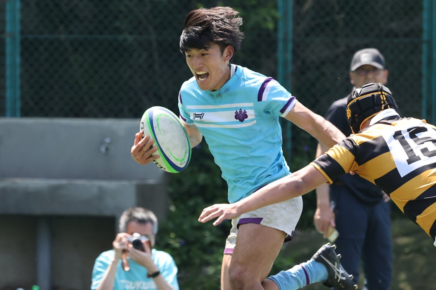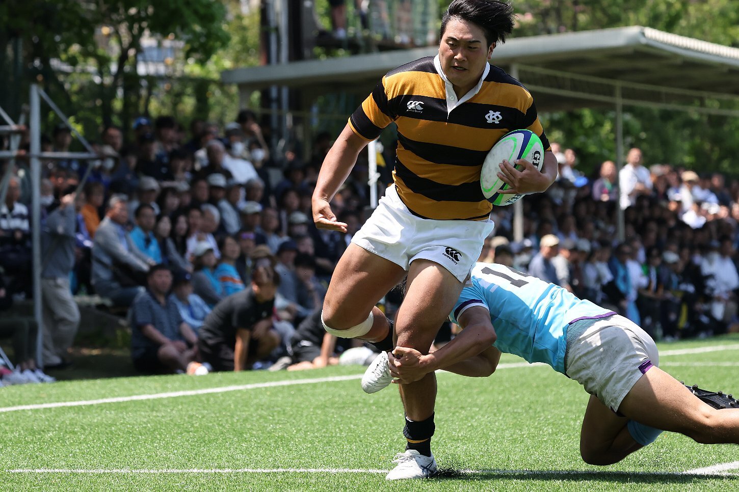 14分、筑波大学が相手の反則からゴール前に攻め込み、最後はFW(フォワード)でこだわり、LO磯部がねじ込んでトライ。19分、慶應義塾大学も相手の反則からゴール前に攻め込み、SO大川がパスダミーから抜け出してトライを挙げて、10-14とする。