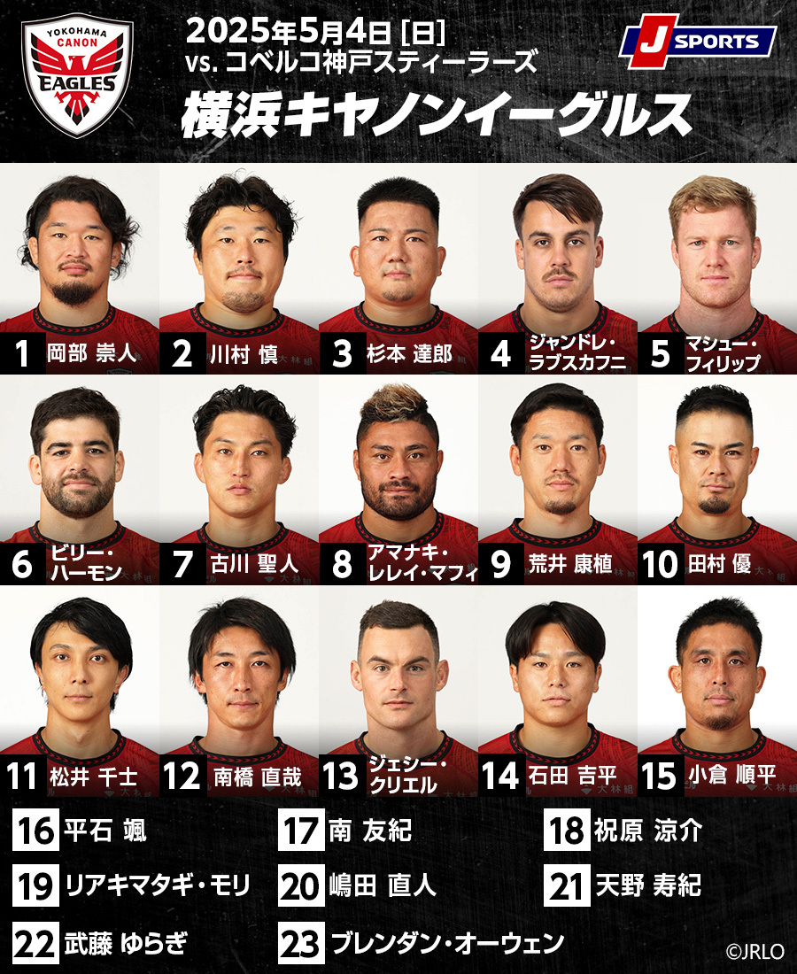 リーグワン・ディビジョン1は残すところあと2節となった。プレーオフトーナメントに進出できる6チームのうち、前節を終え、5位のコベルコ神戸スティーラーズ(神戸S)までがプレーオフを確定させた。残るは1枠。現在6位の東京サンゴリアスにもっとも近いのが7位の横浜キヤノンイーグルス(横浜E)だ。その横浜Eは、5月4日、秩父宮ラグビー場で神戸Sを迎え撃つ。サンゴリアスとの勝ち点差は6。2試合での逆転に向けて、必勝態勢で臨む。