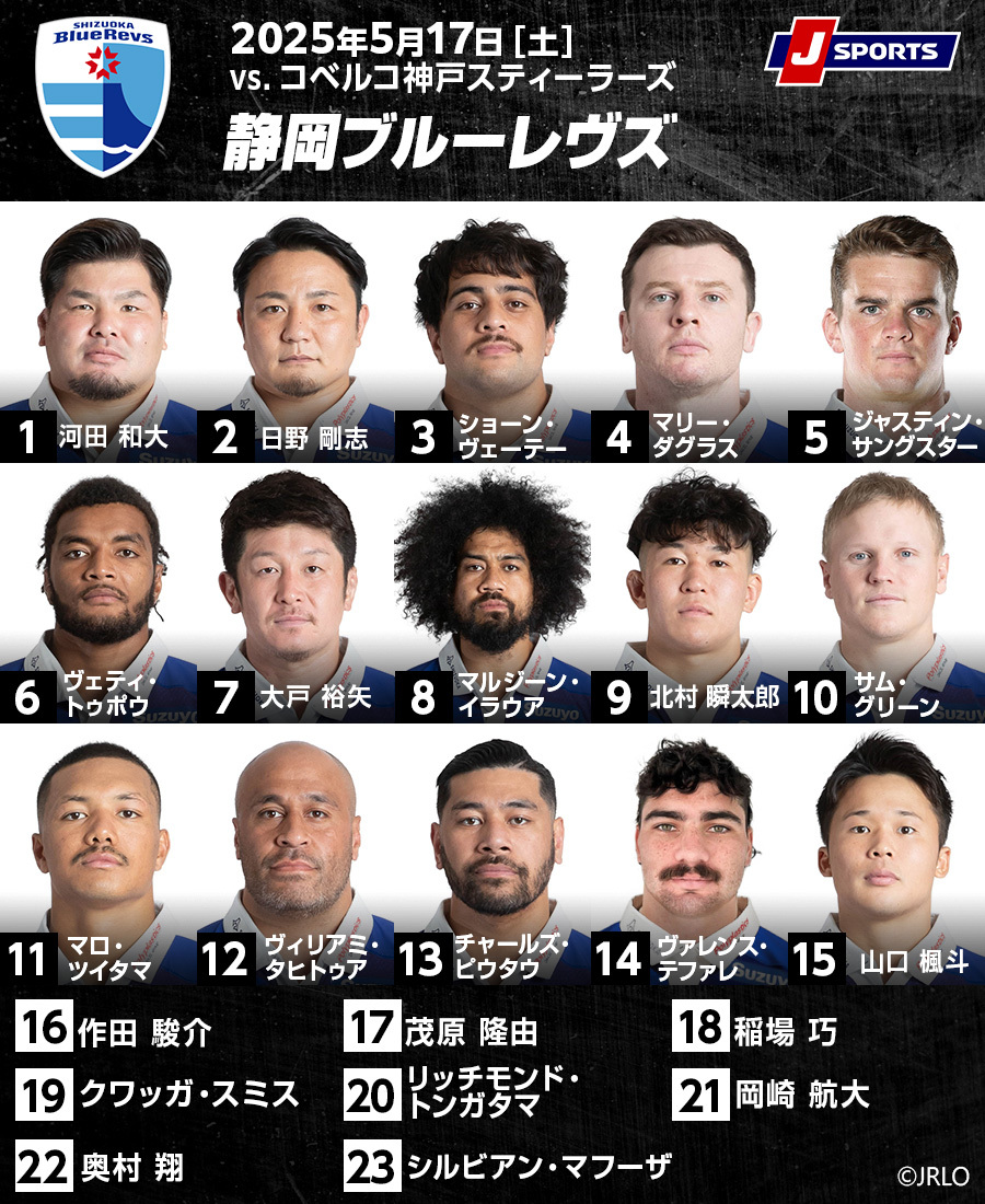 15日正午に発表されたメンバーを見ると、両チームともに数名の変更がある。静岡BRは、FW第一列の両PRが、山下憲太、伊藤平一郎から、河田和大、ショーン・ヴェーテーに変更。4番だった大戸裕矢が7番に下がって、4番にはマリー・ダグラス。前節7番で先発したクワッガ・スミスは、リザーブからのスタートになる。そして、14番で怪物WTBヴァレンス・テファレが先発する。スミスのリザーブ起用について、藤井監督は「(プレーオフのような戦いでは)試合の最後をどう締めるかが大事」と話し、どんな状況でも試合の流れを味方に引き寄せるスミスの経験と能力を買ってリザーブ起用したと話した。