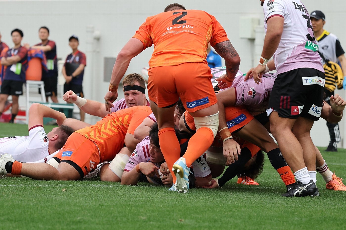 すると23分、スピアーズが相手陣奥でラインアウトモールを押し込み、サンゴリアスの反則を誘う。スピアーズは冷静にタップキックからのアタックを選択すると、途中出場PR為房慶次朗(明治大学出身)がトライライン付近まで迫り、最後は途中出場のLOルアン・ボタが右中間にねじ込んで、17-12と再びスピアーズがリードした。