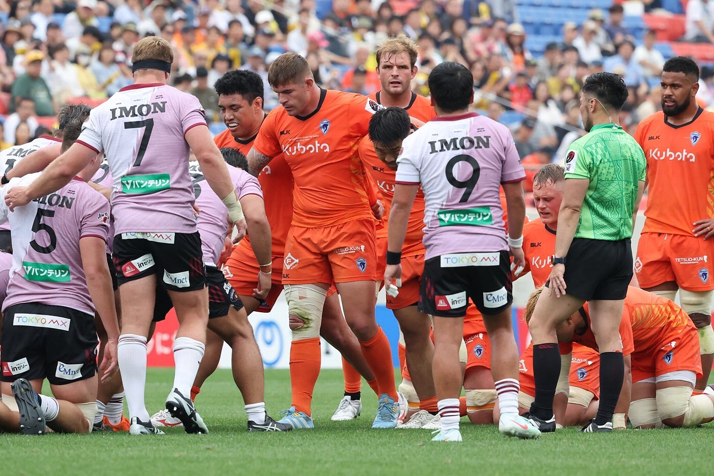 BKは、元日本代表のSH流大、SO森谷圭介とこちらもハーフ団は変わらない。インサイドCTBは中野将伍が先発し、アウトサイドCTBとしてコンビを組むのは、2試合ぶりに復帰したイザヤ・プニヴァイとなった。