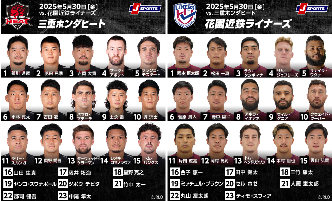 バックローは、FLミッチェル・ブラウンがベンチに下がり、菅原貴人が6番に入り、野中翔平が先発に上がり、NO8は宮下大輝に代わって、ニュージーランド代表経験のあるアキラ・イオアネが、3月の第10節以来メンバーに名を連ねた。