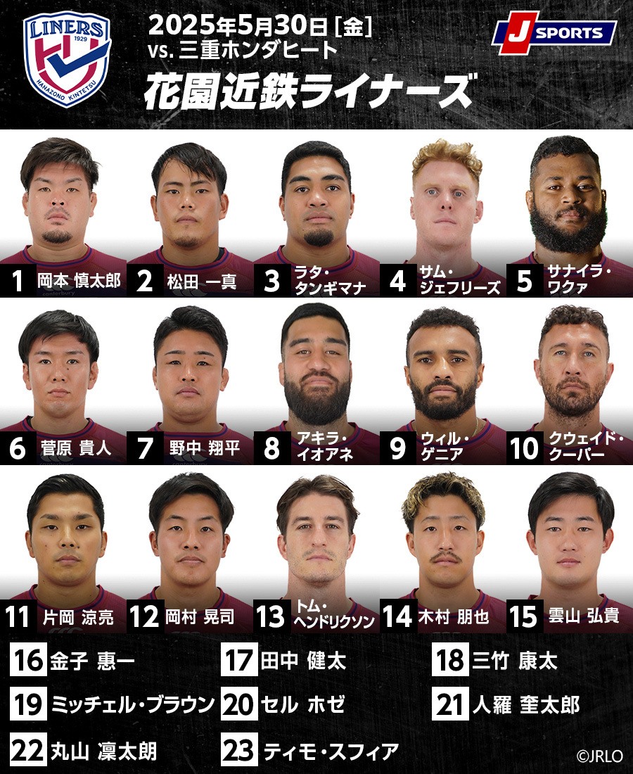 FW第1列は変わらず、PR岡本慎太郎、ラタ・タンギマナ、HO松田一真の3人。LOもサム・ジェフリーズ、日本代表サナイラ・ワクァの2人も引き続き先発する。