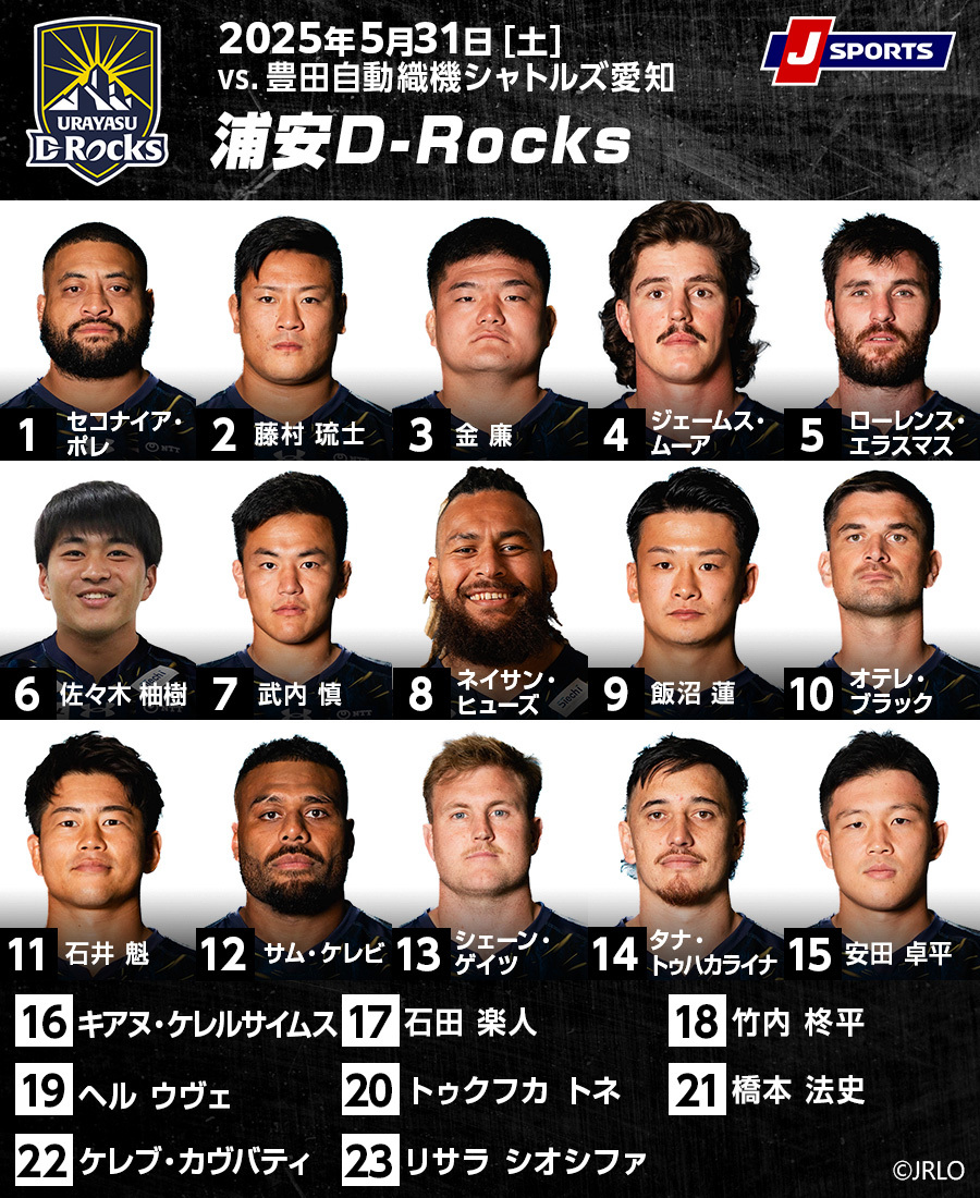 LO(ロック)は佐々木柚樹(大東文化大学出身)が6番に移動し、この試合で引退する元日本代表のジェームス・ムーアが入り、ローレンス・エラスマスとコンビを組む。
