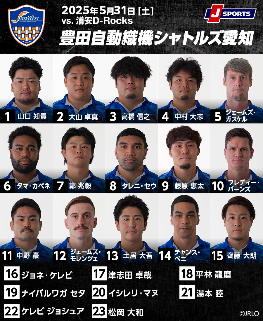 LOは中村大志と、イングランド代表キャップを持ち全試合で先発しているキャプテンのジェームズ・ガスケルのコンビも変わらない。バックローの顔ぶれも先週に引き続き、リーグ戦全試合先発のFLタマ・カペネと、FL鄭兆毅、元サモア代表のNO8タレニ・セウが務める。