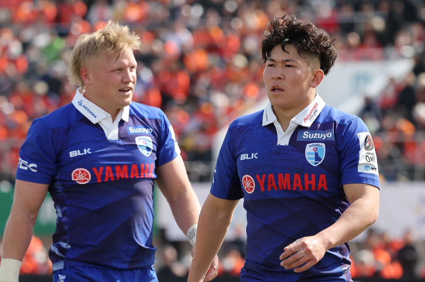 SOサム・グリーン(左)、SH北村瞬太郎(静岡ブルーレヴズ)