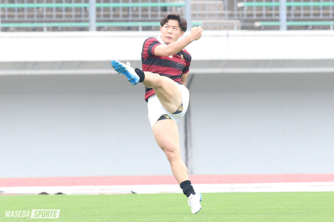 その後のキックもFB(フルバック)島田隼成(スポ2=福岡・修猷館)が冷静に沈め、7-14。流れに乗りたい早大だったが、前半終了間際にも失点を許し、7-19とリードを許して試合を折り返した。