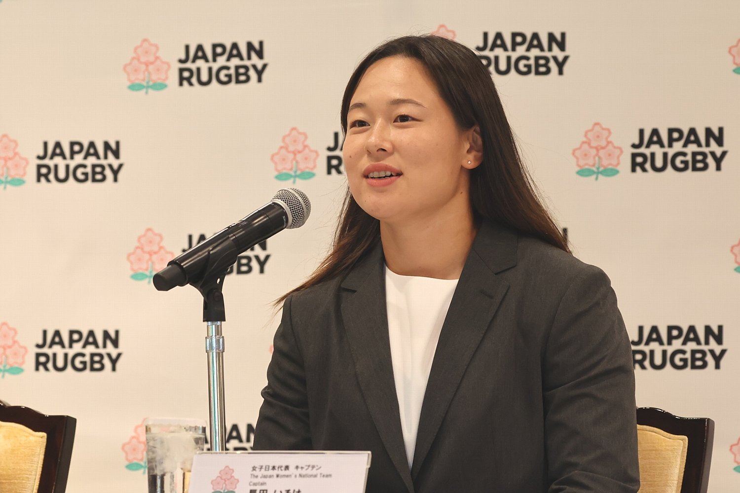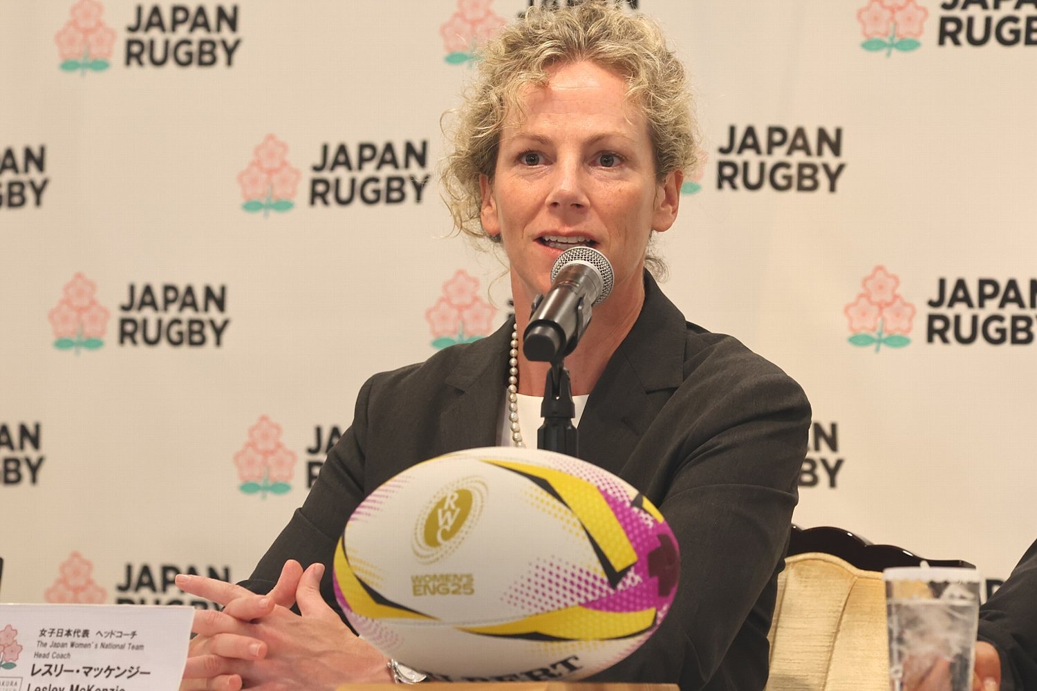 登壇者は2大会前にチームを率いた有水剛志ナショナルチームディレクター、前回大会に続き、指揮官を務めるレスリー・マッケンジーHC(ヘッドコーチ)、そして3大会目の出場となるキャプテンのFL(フランカー)長田いろはの3名だった。