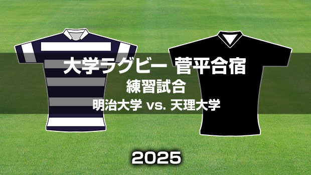 いよいよ大学ラグビーの練習試合が本格的に始まった。8月17日(日)、長野・上田市にある『アンダーアーマー菅平サニアパーク』のDグラウンドで、明治大学(昨季対抗戦3位)と天理大学(昨季関西Aリーグ1位)が、40分×3本の形式で対戦した。