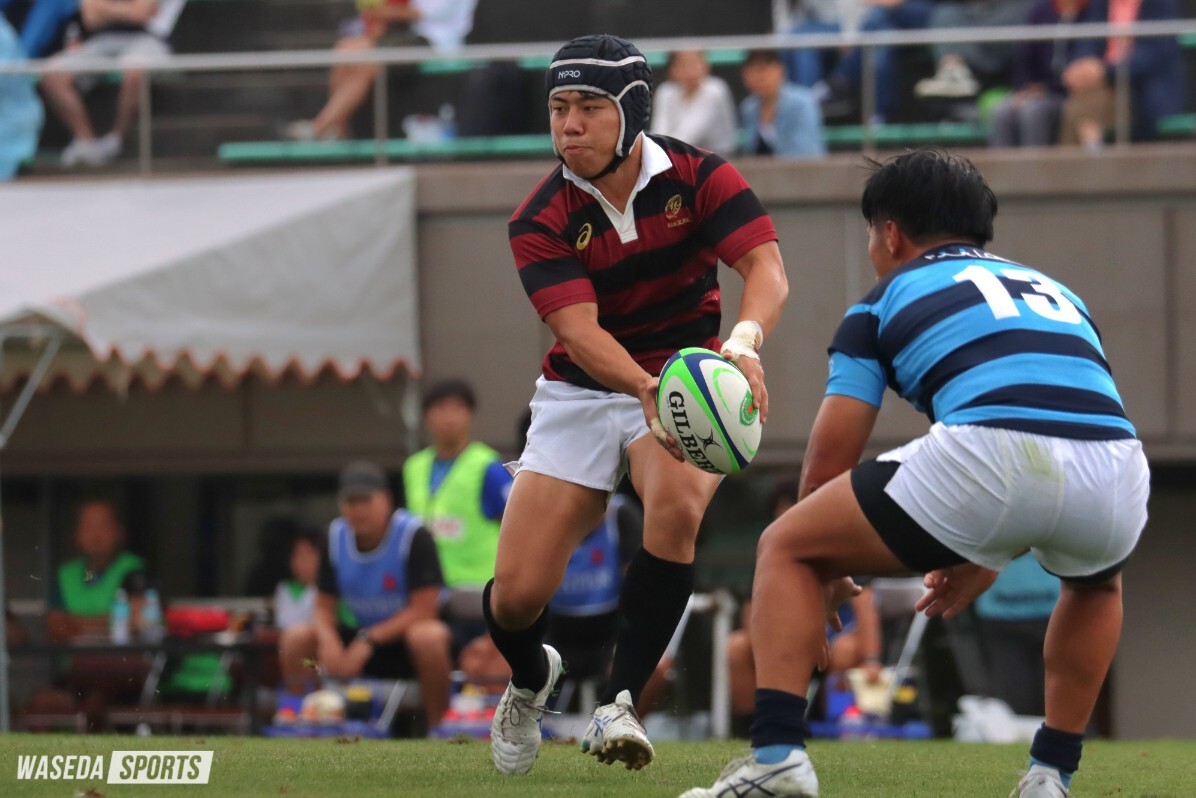 SO(スタンドオフ)野中健吾主将(スポ4=東海大大阪仰星)のキックオフで対抗戦の火蓋が切って落とされた。試合開始直後から早大は攻撃のギアをあげる。