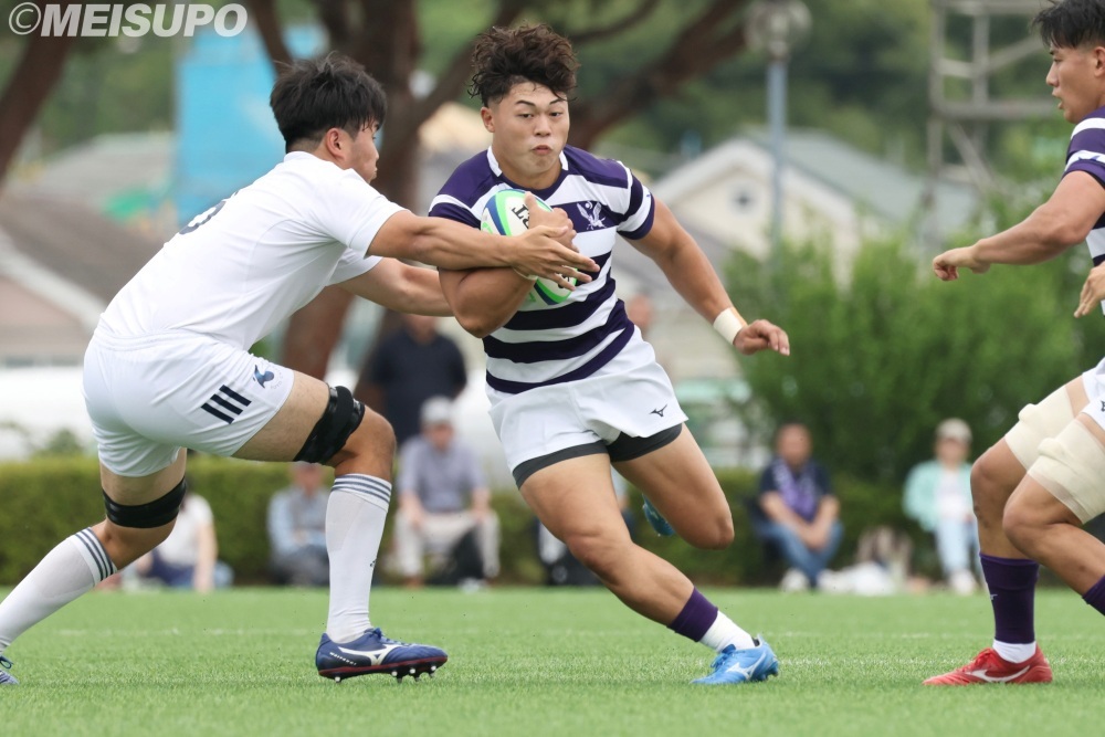 注目は、2023年度の花園準優勝メンバーであるSO(スタンドオフ)井上晴生だ。大学1年時からスタメンに定着し、チームの躍進を大きく支えた。青学大の井上、松崎天晴、利守晴と、明大の高比良恭介(政経2=東福岡)、倉掛の東福岡高同期対決にも注目したい。