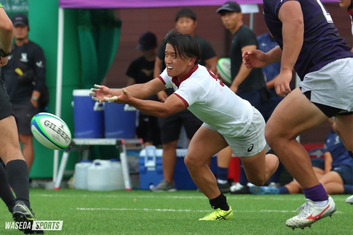 持ち前の冷静さと安定感でアタックラインを統率。彼のコントロールによって流れを取り戻した早大は、試合終盤に畳み掛けるように得点を重ねた。最終スコアは59-7。悪天候下でのタフな試合を、見事に制してみせた。