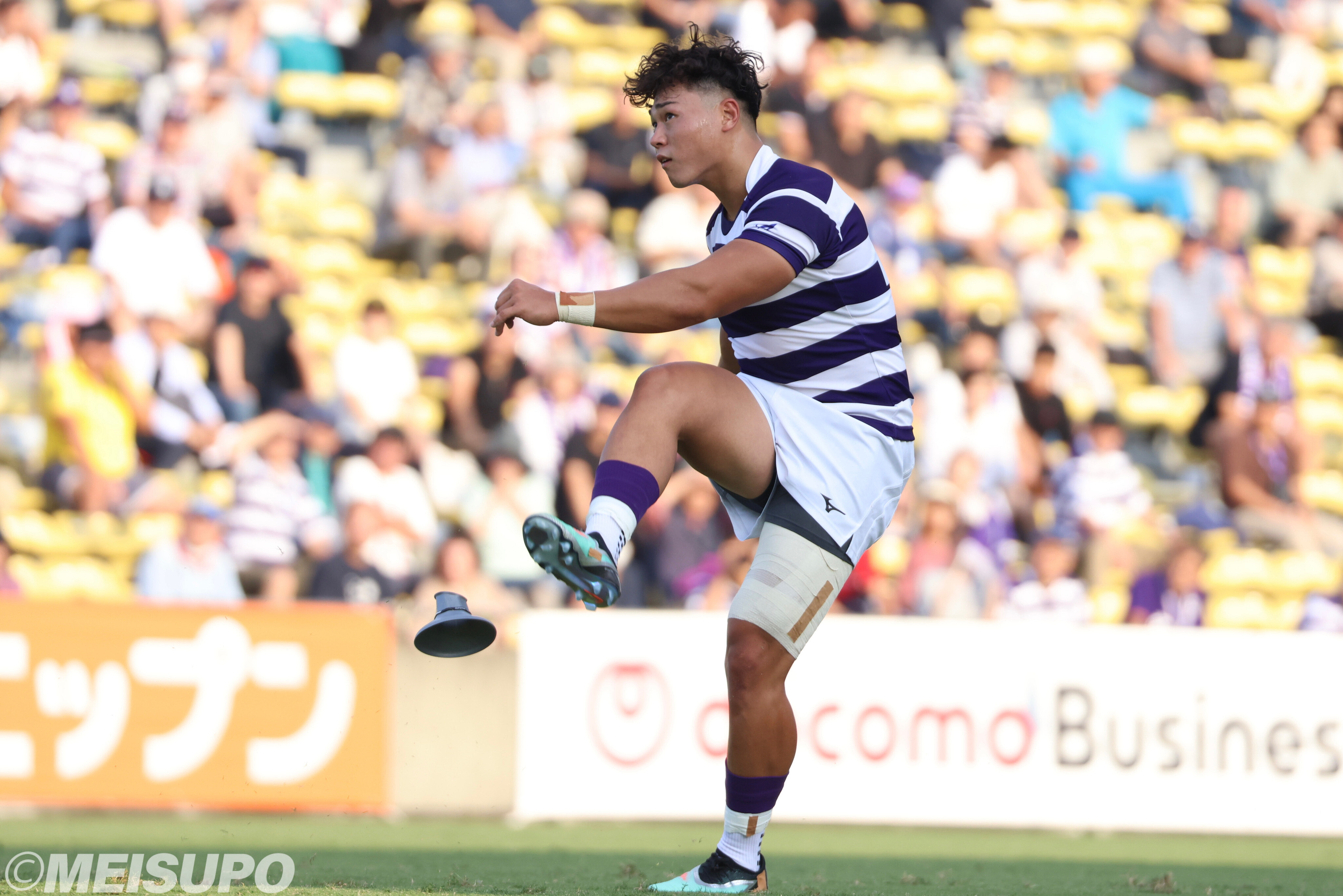 反撃に転じたのは前半22分、SO(スタンドオフ)伊藤龍之介(商3=国学院栃木)が50-22を成功させる。ラインアウトから攻め続け近場の攻防に持ち込むと、右LO(ロック)物部耀大朗(商3=中部大春日丘)がトライ。