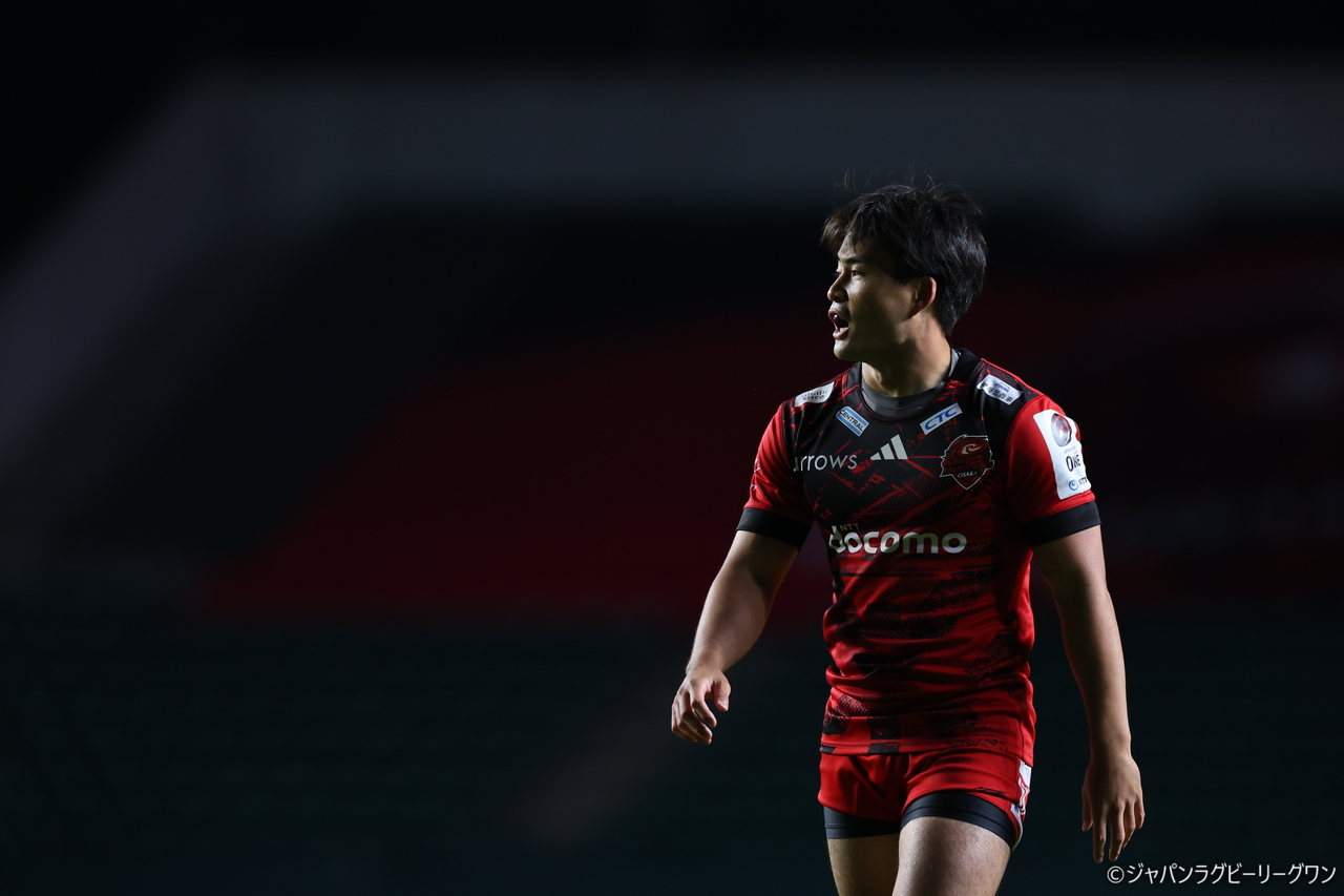 ゲームキャプテンを務めるスタンドオフの射場大輔はセンターでプレーしてきた。しかし今回のライジングでは初戦の九州電力キューデンヴォルテクス戦に続いて10番で先発する。