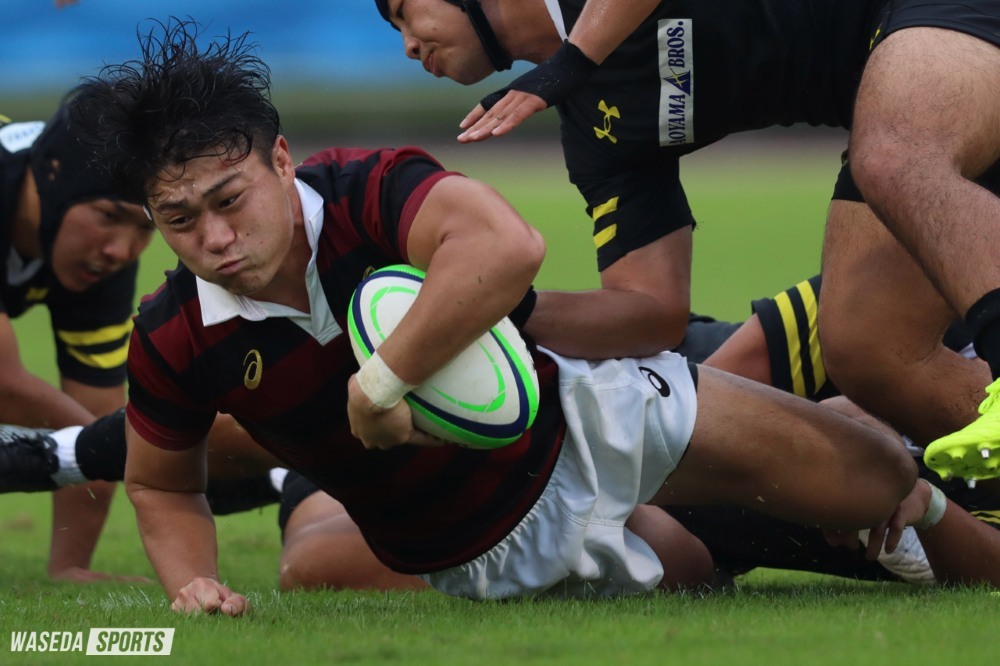特に輝きを放ったのは、両翼を担ったWTB(ウィング)山下恵士朗(スポ2=早稲田佐賀)と、田中健想(社2=神奈川・桐蔭学園)。