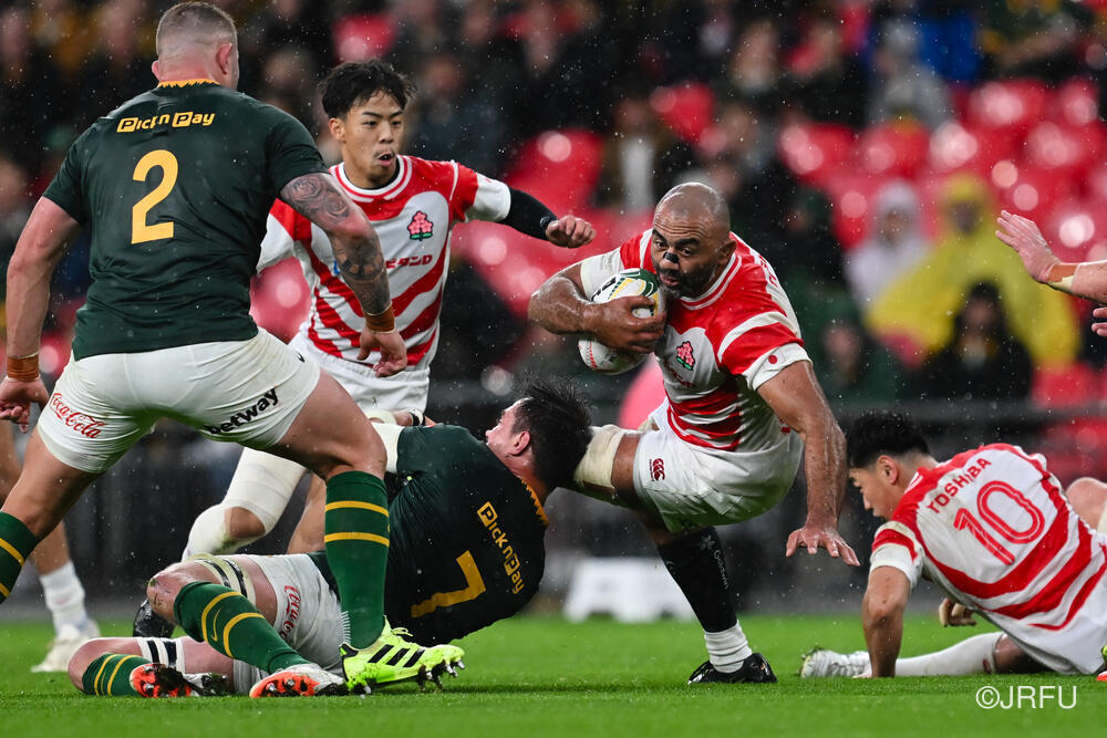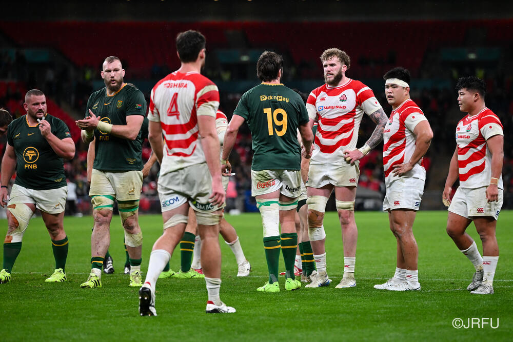 日本代表の「リポビタンDツアー」第1戦は世界王者に挑み、厳しい現実を突きつけられる結果になった。11月1日(日本時間:2日午前1時10分)、日本代表対南アフリカ代表は、ロンドンのウェンブリー・スタジアムに23,243人の観衆を集めて行われた。試合は、南アフリカのSOサシャ・ファインバーグ=ムンゴメズルのキックオフで始まった。