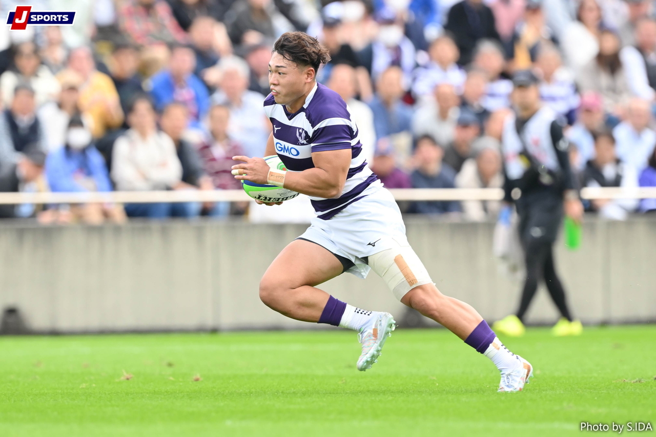前半からエッジまでボールを運べていた展開力でゴール前に迫ると、最後は慶應義塾高出身のSH橋本弾介がパスダミーから歓喜の後半初トライ。ゴール成功で7点差(12-19)に迫り、雰囲気を接戦ムードに一変させた。