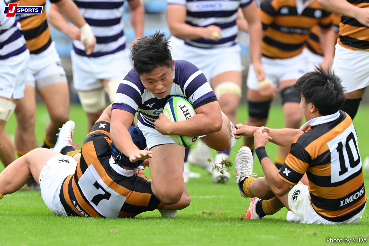 思わぬ形で勝利を手にした明大だが、内容は「辛勝」。序盤から肉弾戦でやや圧力を受け、モールで活路は開いたものの、フォワードの近場勝負で獲りきれない場面もあった。