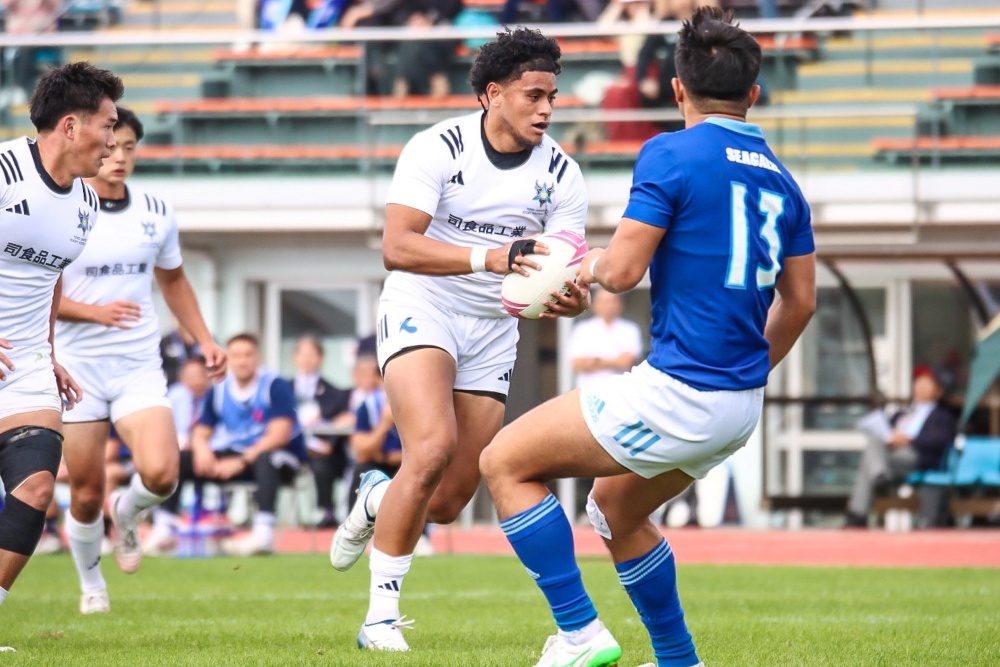 44分、こう着していた状況からHO(フッカー)岩崎ヴィージェー純(1年)がゲインを見せ、WTB浅尾至音(3年)にボールが渡る。タックルを受けながらもインゴールに楕円球を沈めたが、コンバージョンは右に逸れ、逆転には至らなかった。